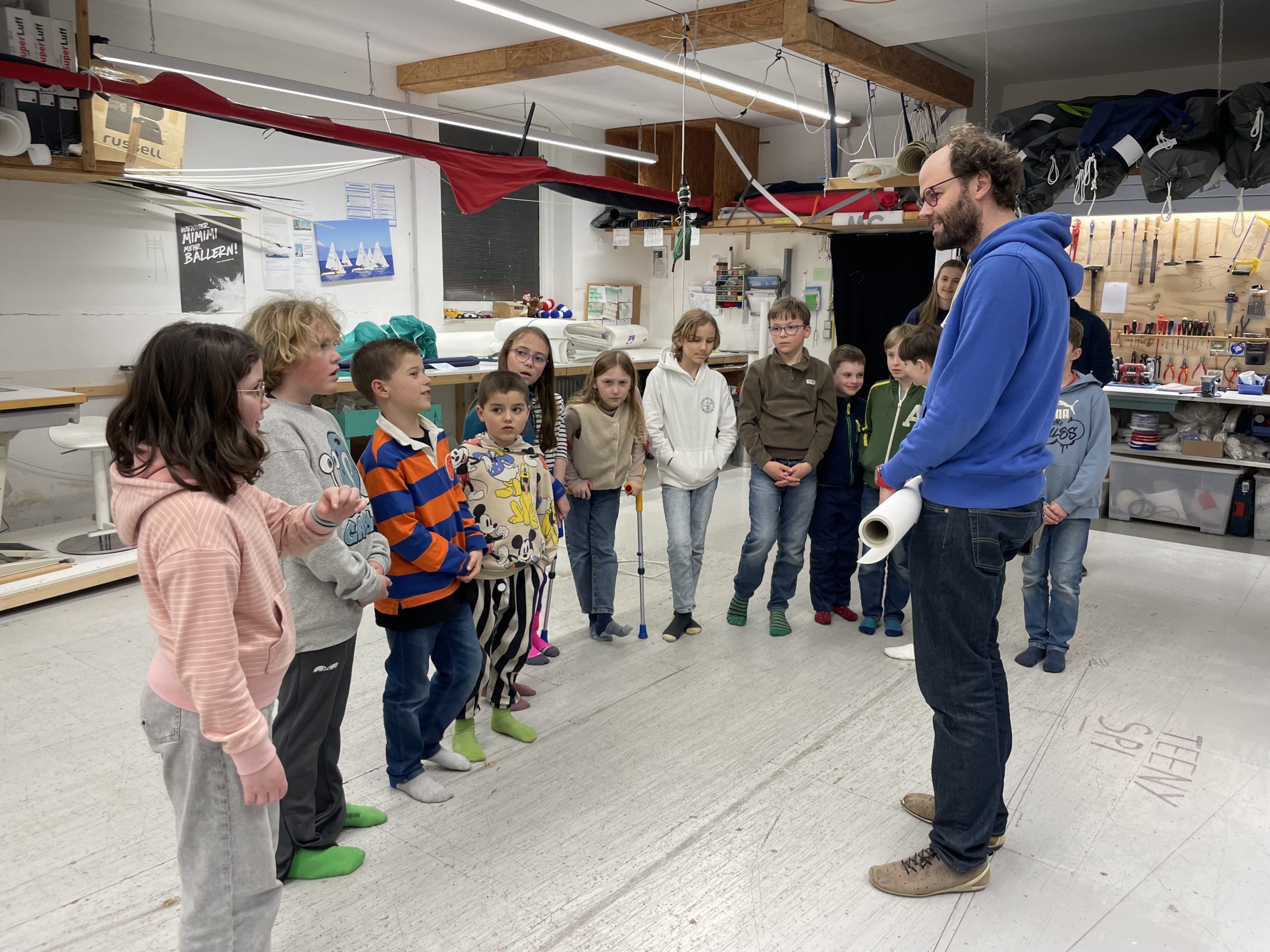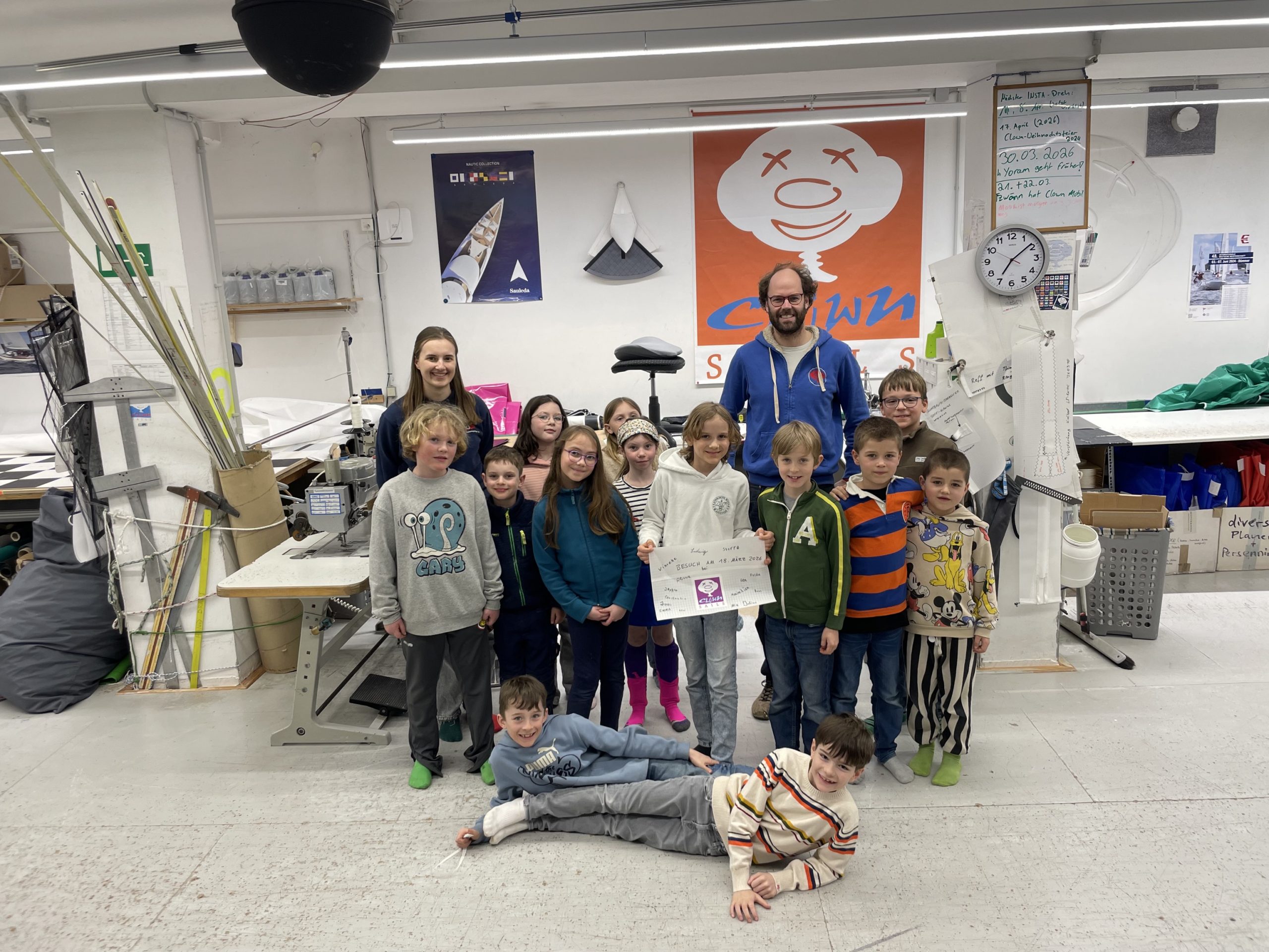 Wir durften mit unseren Optigruppen aus dem zweiten Jahr heute die Segelmacherei Clown Sails besuchen. Die Kinder konnten sehen, wie ein Segel zusammengebaut ist und woraus es besteht. Auch die Werkstatt haben wir uns genau angeschaut.