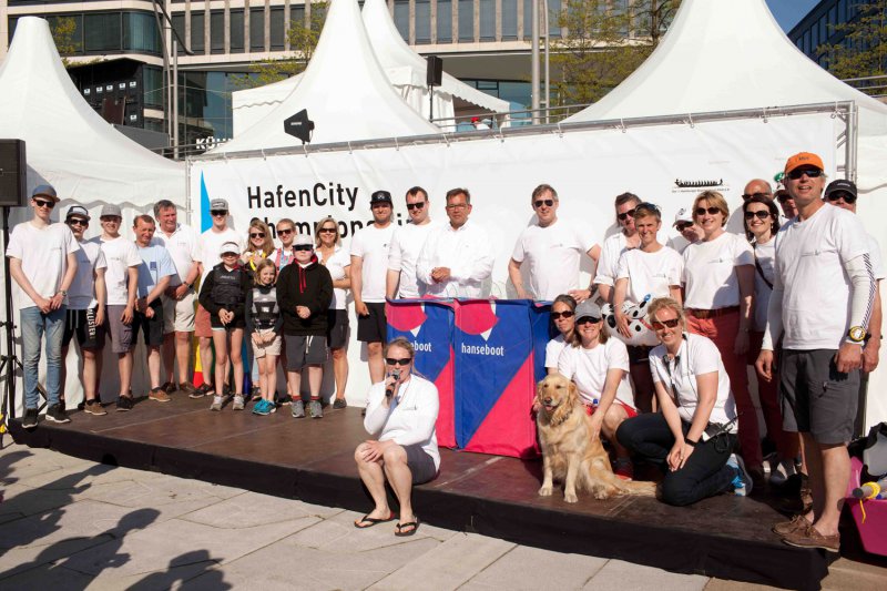 Das Teamrace im Grasbrookhafen war der sportliche Höhepunkt des 827. Hafengeburtstags in Hamburg, der bei strahlendem Sommerwetter und böigen Winden von bis fünf Beaufort anspruchsvolles Segeln zu bieten hatte. Am Championship Teamrace beteiligten sich insgesamt fünf Teams. Jeweils zwei Teams von je 4 Booten segelten auf einer kurzen Regattabahn. Jedes Boot erhält die Punktzahl, die seinem Rang entspricht. Das Team mit weniger Punkten hat den Lauf gewonnen. Im Gegensatz zur normalen Regatta, wo jeder Segler/-in auf sich allein gestellt ist, entscheiden die guten Segelleistungen des Teams über Sieg oder Niederlage.