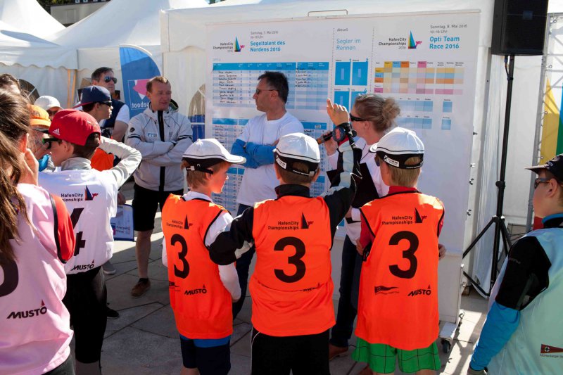 Die Mannschaften segelten vor Ebbe ein erstes Round Robin, bei dem jedes Team gegen jedes der vier anderen Teams der Gruppe antritt. Mit geschickten Match Race-Mannövern versuchen dann die versierten Opti-Segler, die gegnerische Mannschaft nach hinten zu segeln, anstatt wie beim Fleet Race der Ein-Mann-Jollen üblich, möglichst als Erster die Ziellinie zu überqueren. Dass dies angesichts der erratischen Windverhältnisse im Grasbrookhafen spannend werden würde, war schon am Vortag bei dem Wettbewerb „Talent des Nordens“ absehbar geworden.