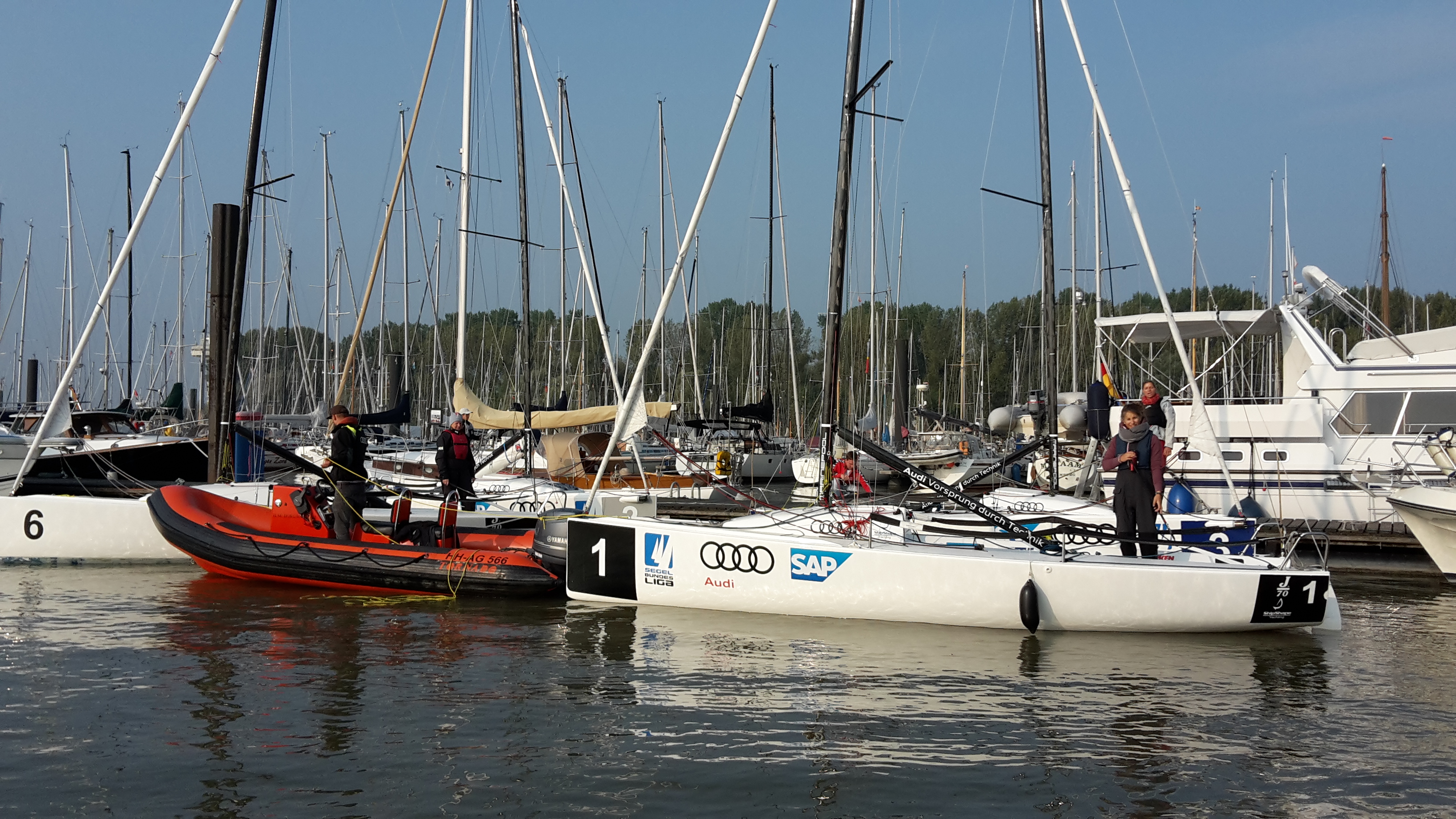 Samstag, 24. September 11.00 erster Start. Bei wenig Wind können 3 Rennen gesegelt werden. Jetzt gibt es lecker Frosta Pfannen und dann hoffen wir auf mehr Wind am Nachmittag. Hier unsere 6 Manschaften.