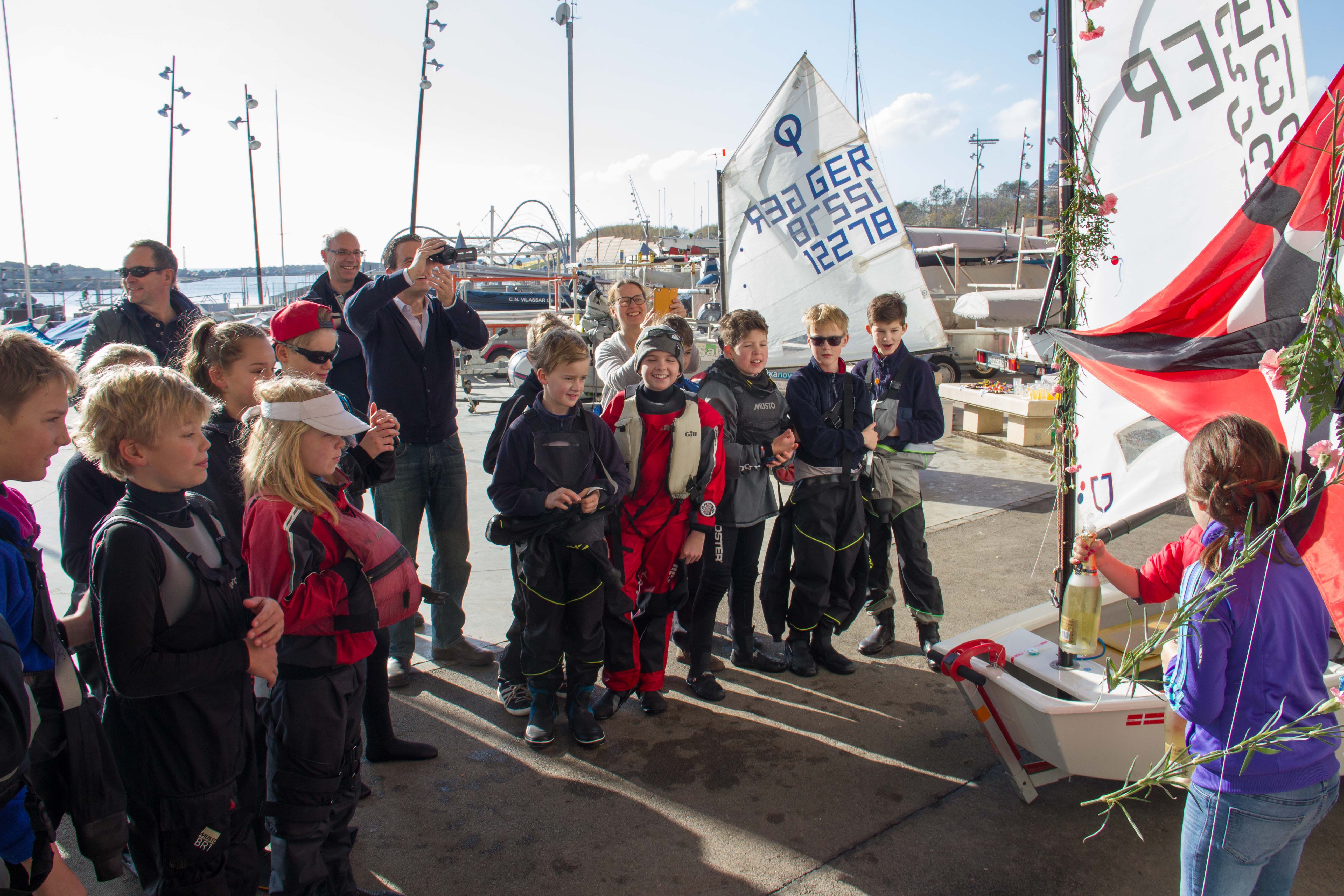 Zwei Optis, die der Weihnachtsmann gebracht hatte, sollten ihre Feuertaufe auf dem Mittelmeer erleben. Nach der Ankunft in Barcelona am International Segelzentrum wurden sie nach allen Regeln der Kunst von den bemühten Vätern bei schönstem Taufwetter geschmückt und unter großer Anteilnahme aller Seglerinnen- und Segler aus Hamburg getauft. Die stolzen Besitzerinnen Ada und Svea freuten sich wie verrückt und konnten es kaum erwarten, die sektgetränkten Boote Showtime und Comoloco (spanisch für „wie verrückt“) auszuprobieren. (HG)