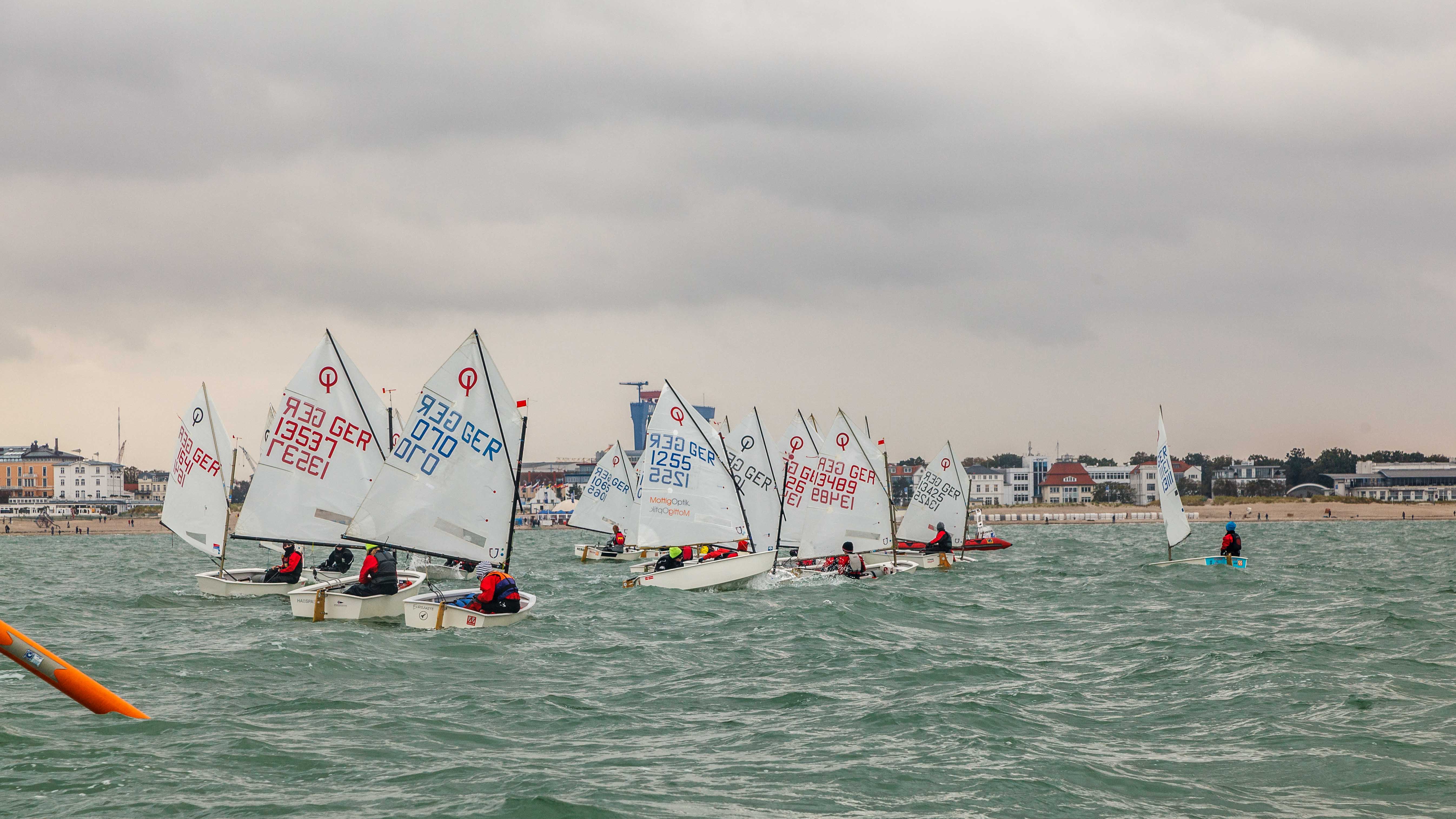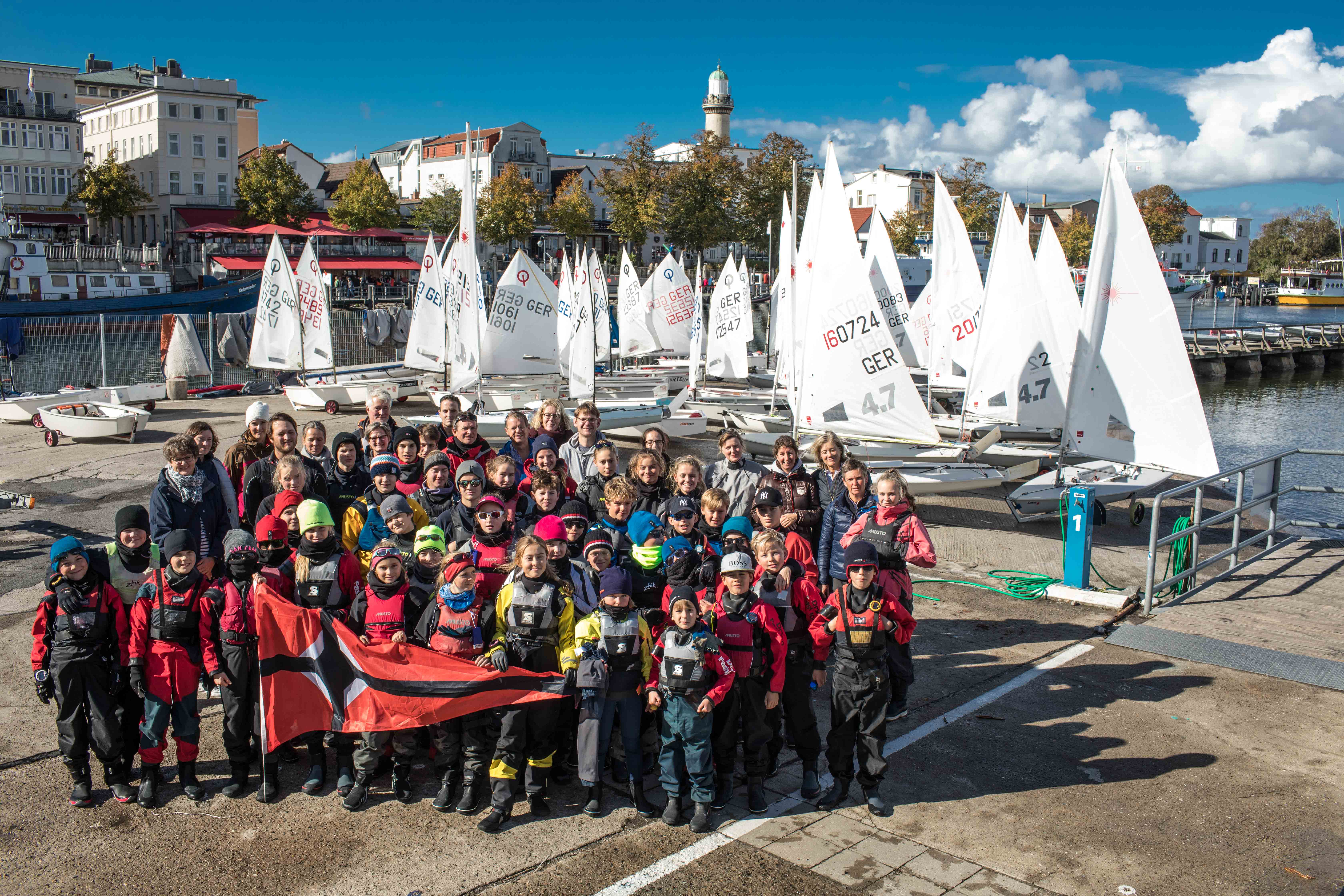 Wie immer in den Herbstferien startete der MSC zu einem weiteren traditionellen Trainingslager in Warnemünde! Die Anreise der Teilnehmer (10 Lasersegler, 25 Optikinder und eine 420er Crew) verteilte sich über den Sonntag, da eine Vielzahl Optikinder direkt aus Flensburg vom Mosquito- Cup kam. Dank der Routine der mitgereisten Eltern waren alle Schlauchboote schnell im Wasser und alle Boote abgeladen, so dass die schon anwesenden Optikids gleich am Sonntagnachmittag aufs Wasser gingen – bloß keine Wasserstunden verschenken! Am Montagmorgen ging es dann für alle los.
