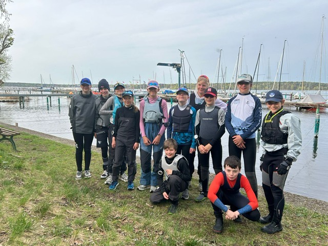 Insgesamt sind wir sechs Wettfahrten gesegelt. Drei am Freitag, zwei am Samstag und eine am Sonntag. Am Freitag hatten wir ganz guten Wind und konnten direkt loslegen. Die beiden Gruppen (Rot und Blau) konnten drei gute Rennen segeln und auch die Wettfahrtleitung war glaube ich sehr zufrieden mit dem ersten Wettfahrtstag. Am Samstag war anfangs zu wenig Wind und es gab Startverschiebung an Land. Doch weil die Sonne schien, baute sich dann später etwas Thermik auf und wir wurden auf die Bahn geschickt. Wir konnten dann leider doch nur zwei Rennen fahren, weil der Wind gegen Ende des Tages wieder nachließ. Am Sonntag hatten wir wieder nur wenig Wind und das bedeutete, dass es erstmal Startverschiebung gab und wir bis mittags warten mussten. Doch als der Wind kam, waren alle wieder ganz schnell an der Sliprampe und es ging los, Blau schaffte mit dem letzten Windhauch noch zwei Rennen, aber Rot leider nur eines, so dass nur das erste Rennen für beide Fleets in die Wertung einging. Trotz aller Windprobleme war es eine tolle Regatta. Gewonnen hatte zum Schluß Jasper Portun, zweite wurde Lea Winkler und dritter wurde ich – das Winner Team hatte ganze Arbeit geleistet. Hier noch ein paar kleine Eindrücke – die Stimmung war gut, vielen Dank an das ganze Regatta Team!