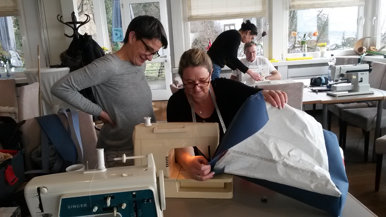 Das notwendige Material, alte Segel oder Persenninge, wurde teilweise von den Teilnehmern mitgebracht aber auch gegen eine Spende für die Jugendkasse zur Verfügung gestellt.