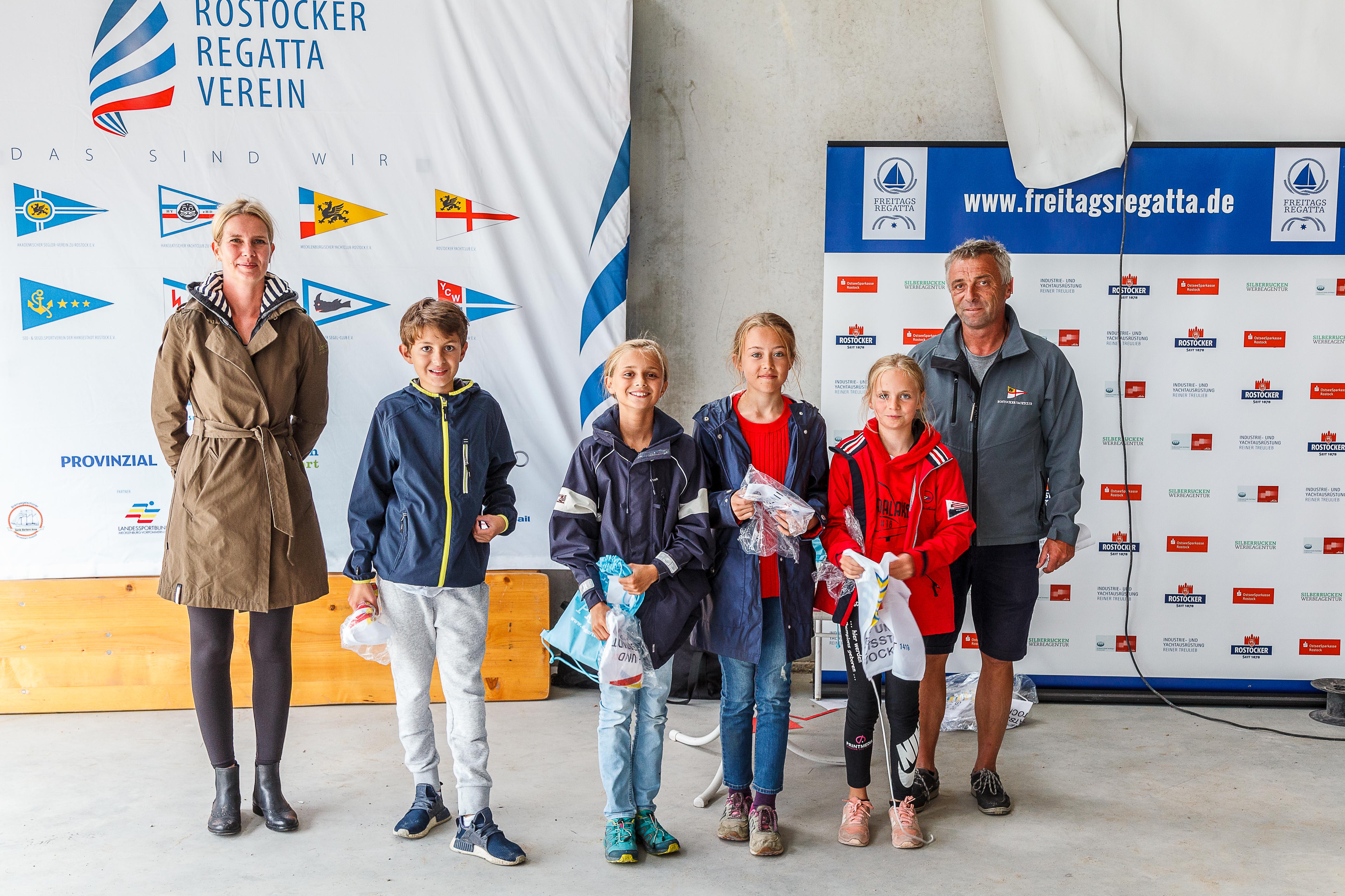 Am Samstag hieß es für Pauline, Esther, Svea und Lukas früh aufstehen in den Ferien, denn es ging zum Rostocker Segelverein. Im Rahmen der Hanse Sail organisierte der RSC92 ein Team Race welches zur Qualifikationsserie des German Team Cup 2018 zählte. Die Konkurrenz war hochkarätig. Ein Großteil der teilnehmenden Kinder kam gerade vom Gardasee von der Internationalen Deutschen Jüngstenmeisterschaft. Vor diesem Hintergrund hieß das Motto „Erfahrung sammeln“. Der Wind wehte frisch mit bis zu 20 Knoten. Die Rostocker freuten sich sehr über den Besuch aus Hamburg. Ungefragt bekamen wir plötzlich ein Motorboot angeboten und waren Teil des Betreuungsteams. Auch die Kinder behandelten sich fair, das MSC Team bekam Tips der „Profis“ und wurde teilweise von den anderen Teams angefeuert. Eindruck hinterließ unser Team, als es die späteren Gewinner und Drittplatzierten vom Gardasee dank einer Kenterung im gegnerischen Team schlagen konnte. Der 4. Platz von 6 teilnehmenden Mannschaften hinterließ einen kleinen Fußabdruck des Team MSC 3 – „Flower Power“, das sehr viel Spaß in Rostock hatte. Es war eine rundum gelungene Veranstaltung.