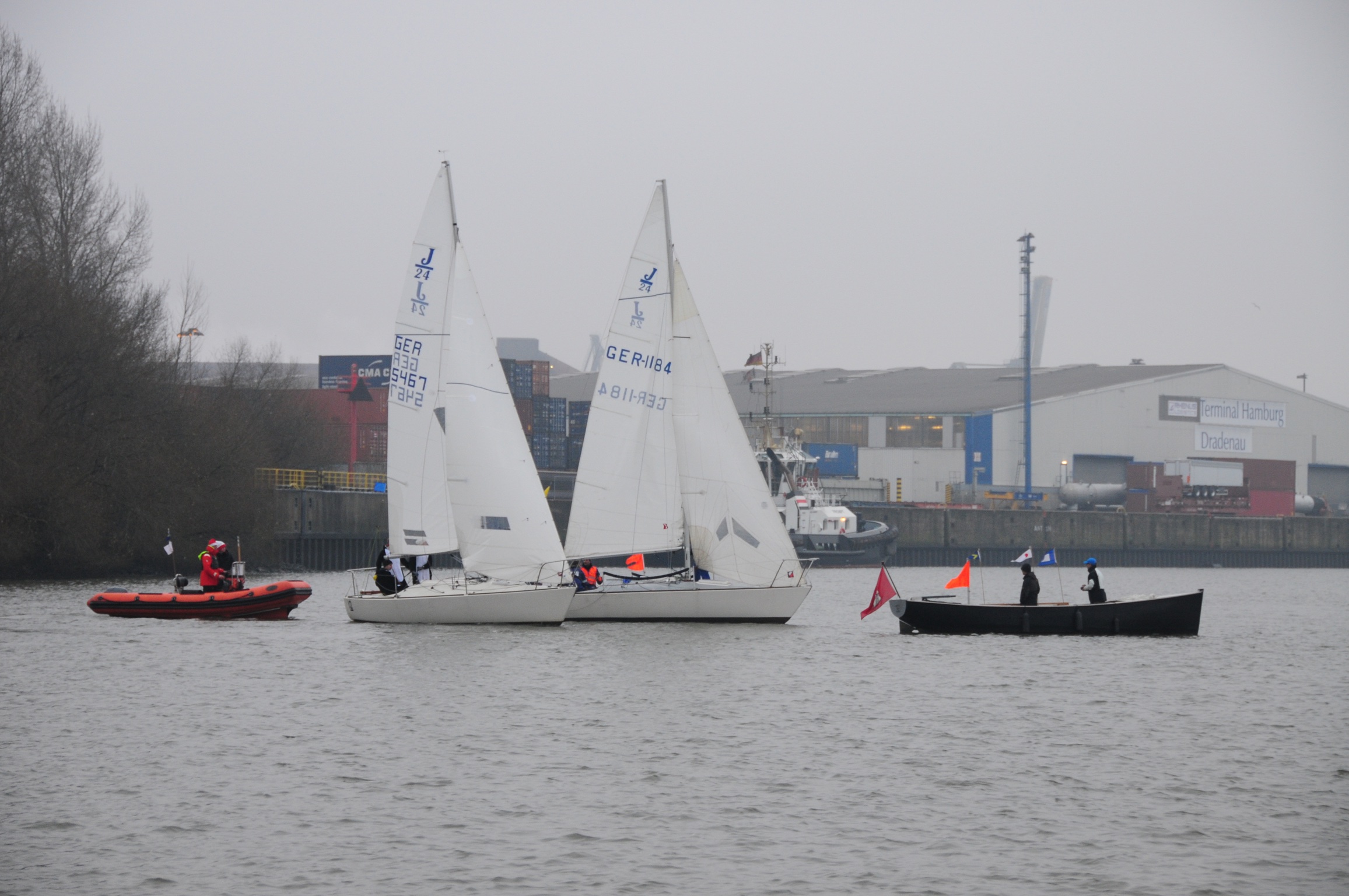 Bei Dunkelheit und Nieselregen trafen wir uns früh am Samstag Morgen bei der Elb-Segler-Vereinigung in Finkenwerder. Nach einem reich bestückten Frühstücksbuffet und einer kurzen Vorstellung der acht Teams ging es um 8:00 Uhr morgens auf die Startbahn auf dem Köhlfleet.
